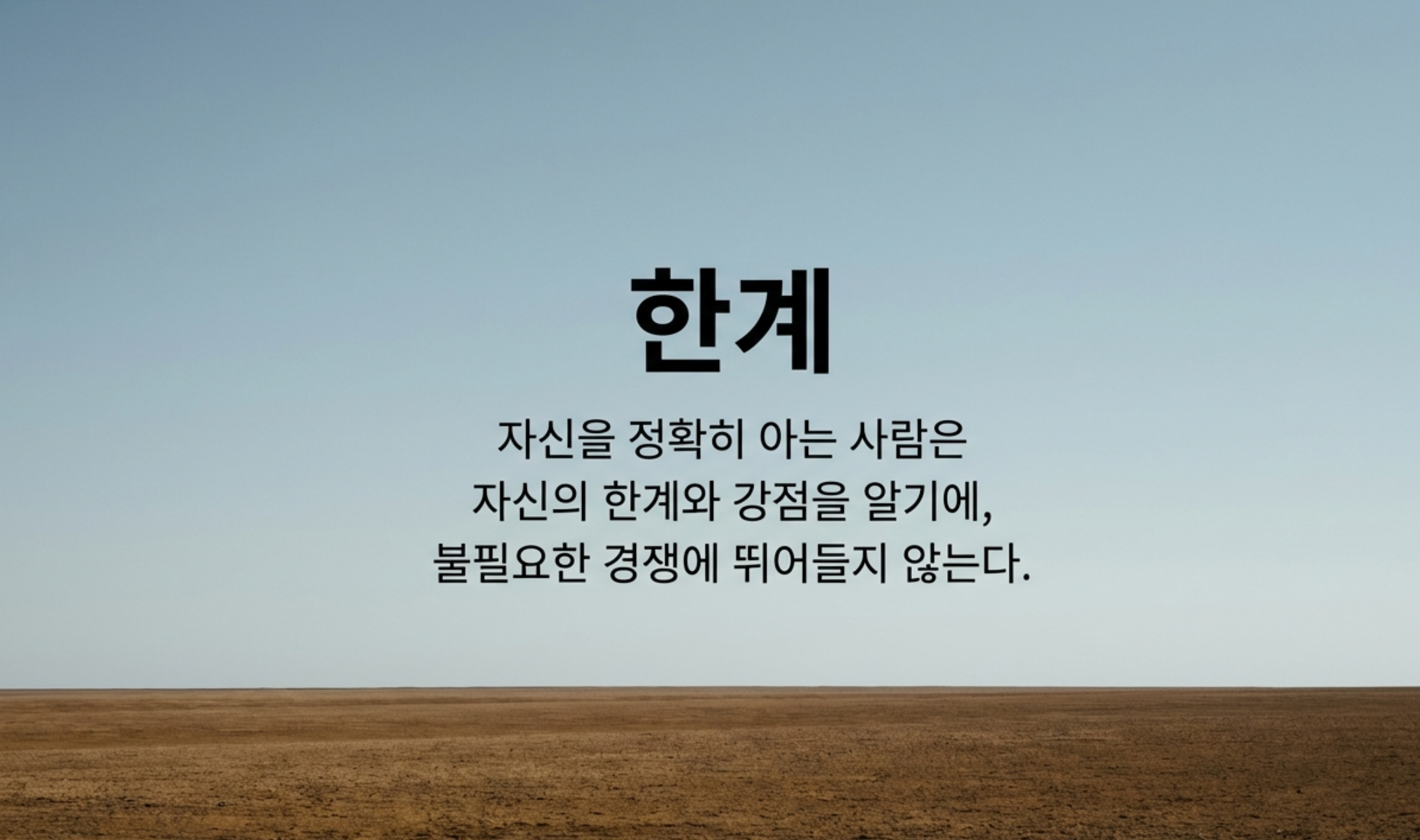 자신의 한계를 알고 자신의 강점을 알기에 불필요한 경쟁을 하지 않습니다.