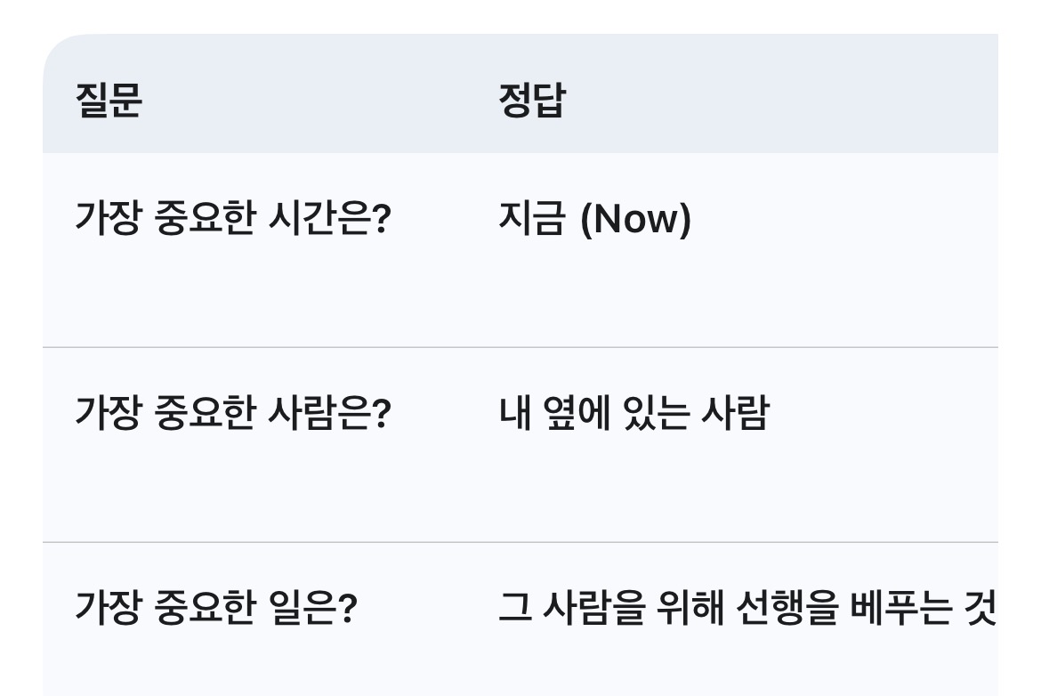 주철환 PD님은 톨스토이의 단편에 나오는 세 가지 질문을 인생의 지침으로 삼고 계셨습니다.