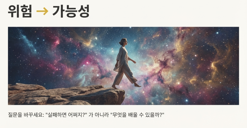 “만약 실패하면 어쩌지? “보다는 “이 경험을 통해 무엇을 배울 수 있을까? “로 질문을 바꿔보세요.