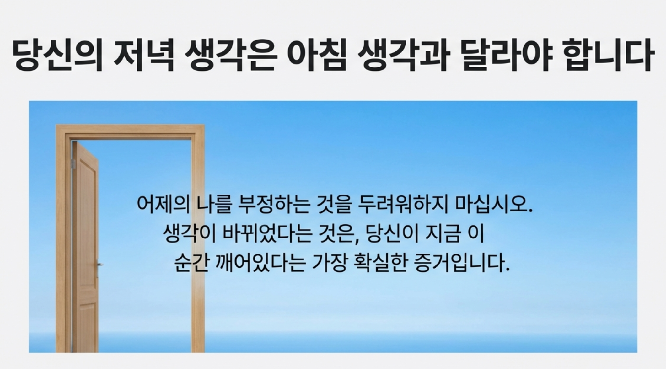 지금 여러분의 아침 생각과 저녁 생각은 달라져도 됩니다.