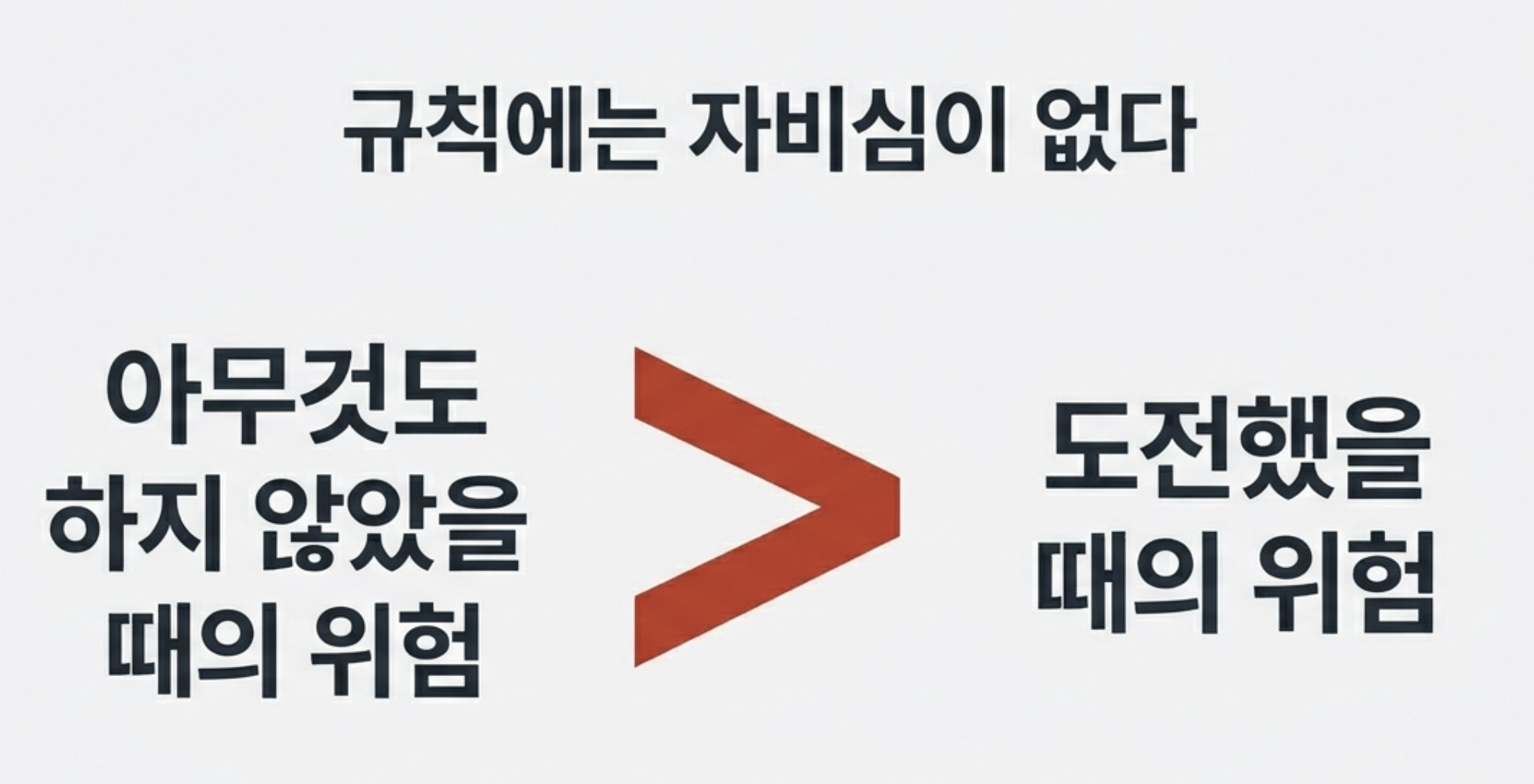 하지만 '아무것도 하지 않았을 때의 위험'이 '도전했을 때의 위험'보다 훨씬 큽니다.