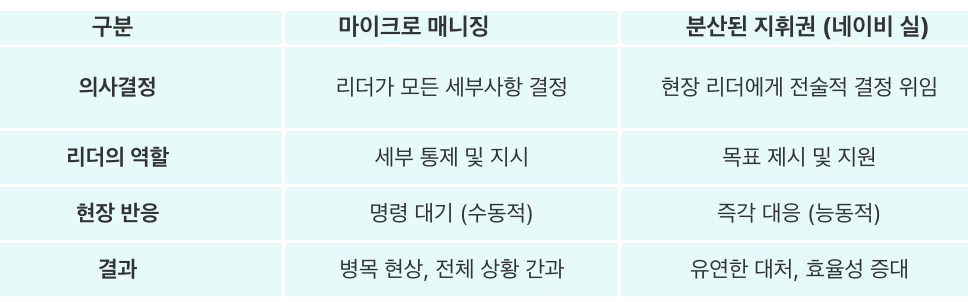 2. 네이비 실의 해결책: 분산된 지휘권 (Decentralized Command)
